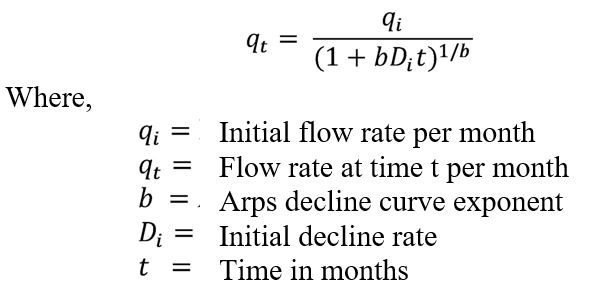 - Constant production mechanism: an assumption that the Arps curve is only valid if the production mechanism remains the same over the life of the well. This assumes no infill drilling, fluid injection, or additional fracturing takes place during the life of the well.